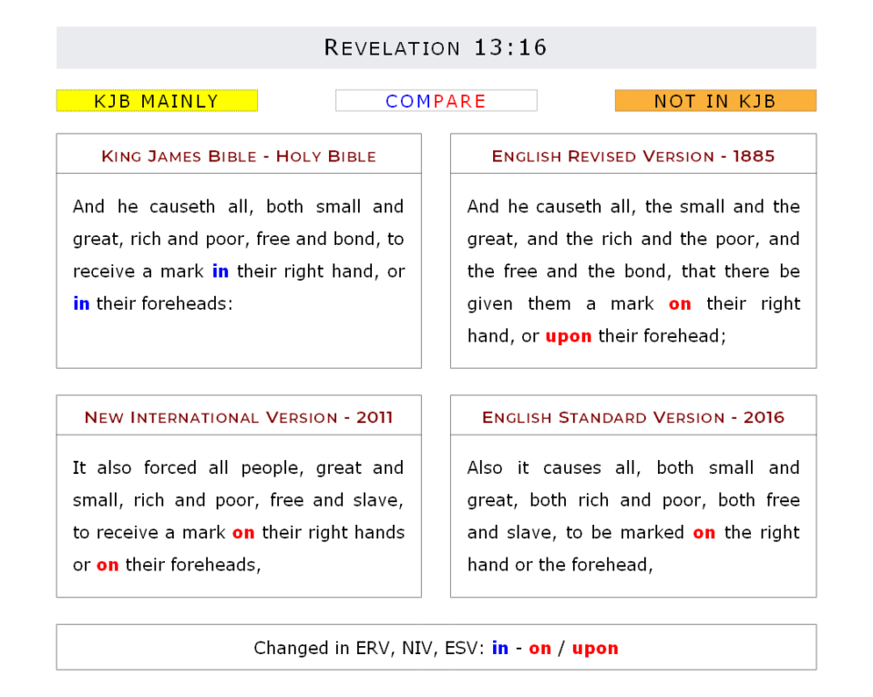 ERV And he causeth all, the small and the great, and the rich and the poor, and the free and the bond, that there be given them a mark on their right hand, or upon their forehead;