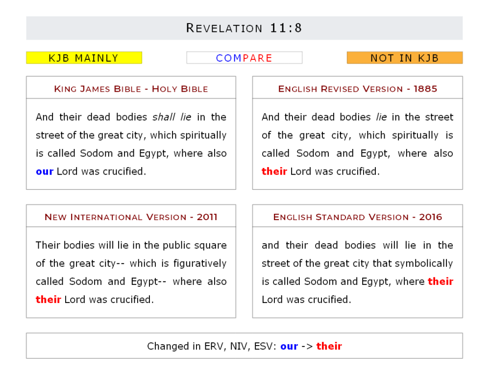 ERV And their dead bodies lie in the street of the great city, which spiritually is called Sodom and Egypt, where also their Lord was crucified.